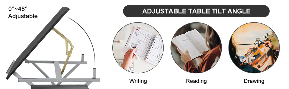 - ZENY drafting desk tabletop can be adjusted to different tilt angles to meet your comfort need.
