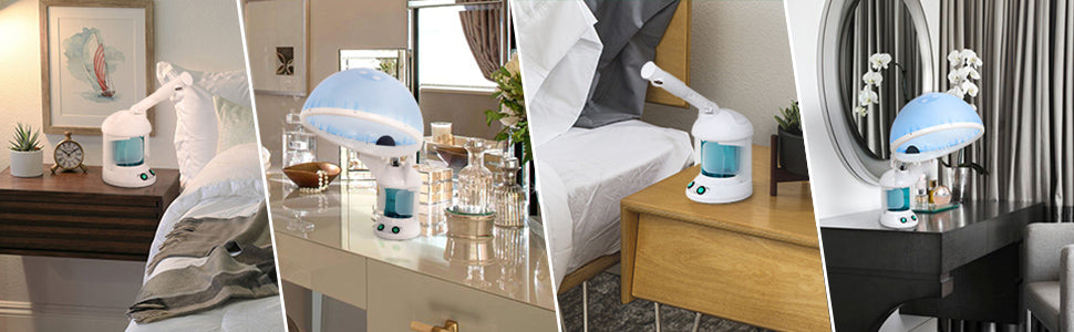 The Steamer’s built -in UV Ozone System brings glow to the skin that can enhance the skin tone and complexion. The device generates a 1-5 um ultra-fine mist that can easily be absorb by the hair or skin, which may improve blood circulation, stimulate the metabolism of cells, and reduce the appearance of wrinkles. The easy one press operation makes it an ideal gift for family and friends. Use on a flat surface 1 or two times a day. No more than twice a day is recommended to allow sufficient time for recovery from the metabolism of cells, with each use not to exceed more than 10 minutes. The steamerA9-1123A can also function as a humidifier.