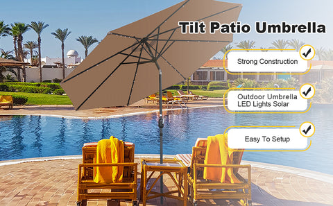 - Tilt Patio Umbrella: Press the handy push button and the umbrella will tilt to left / right helping shade throughout the day as the sun moves.Provide a perfect shade for your patio, garden, deck, backyard, pool