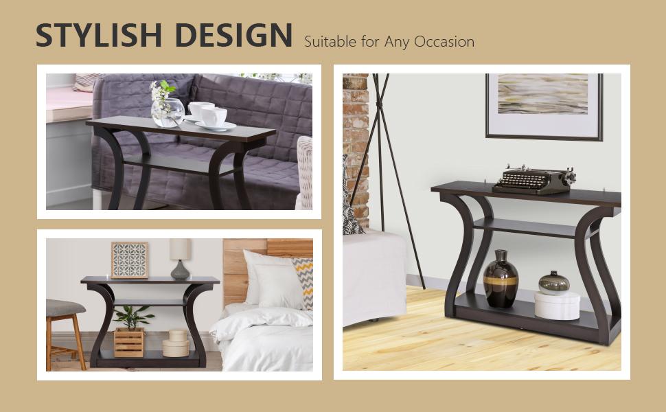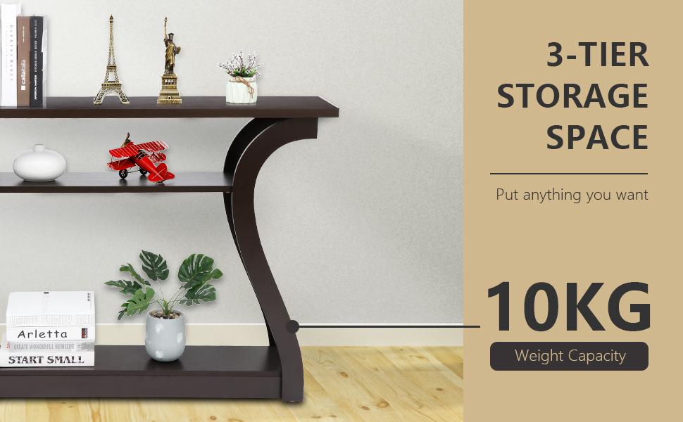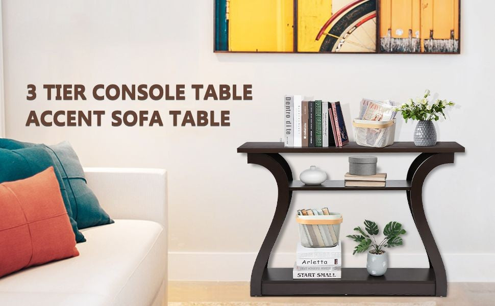 - 【Multi-function Console Table】- This 3-tier console table works greatly as a console table, sofa table, entry table, hallway table, even as a TV stand. Compact size makes this console table perfect for living room, bedroom, dining room, study, balcony, office, hallways and so on.