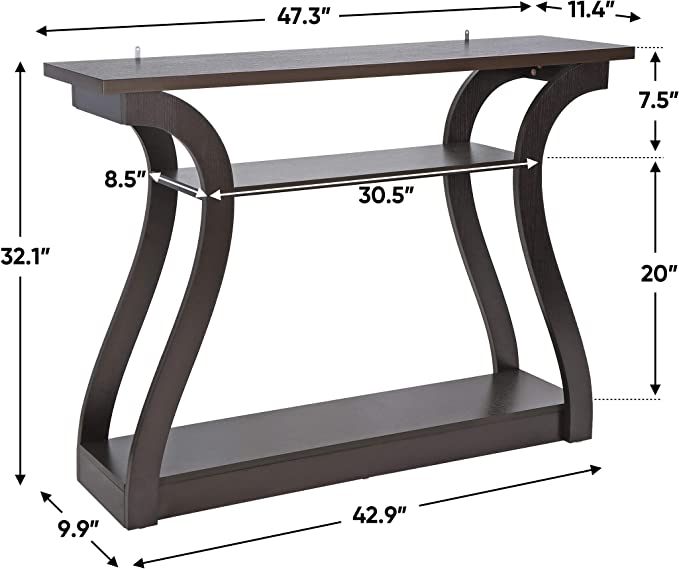 Accent Console Table 3 Tier Modern Long Narrow Sofa Side Table with Curved Legs and 2 Storage Shelves for Entryway Hallway Living Room, 47 Inch Wood Cappuccino/Dark Brown/Espresso