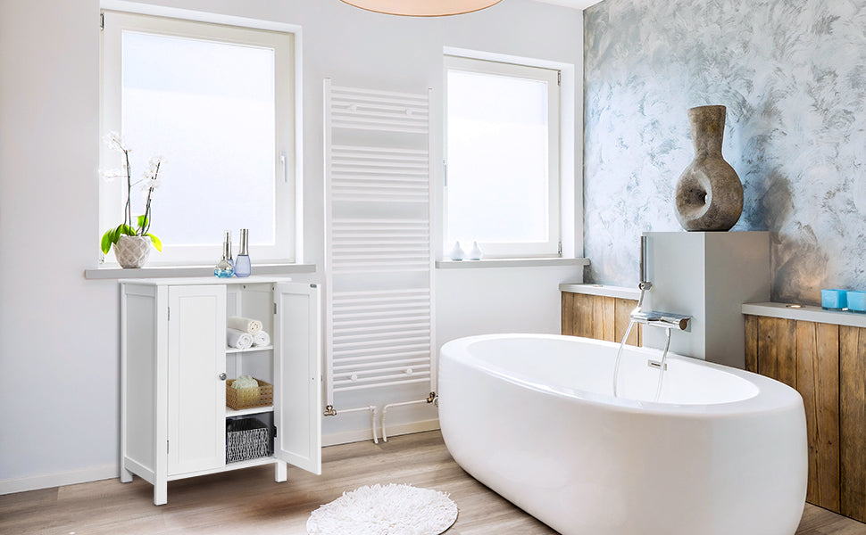 - 【Easy to Install and Clean】Bathroom floor cabinet can be installed in a breeze under the easy-to-use instruction included. Smoothly painted surface is very easy to clean.