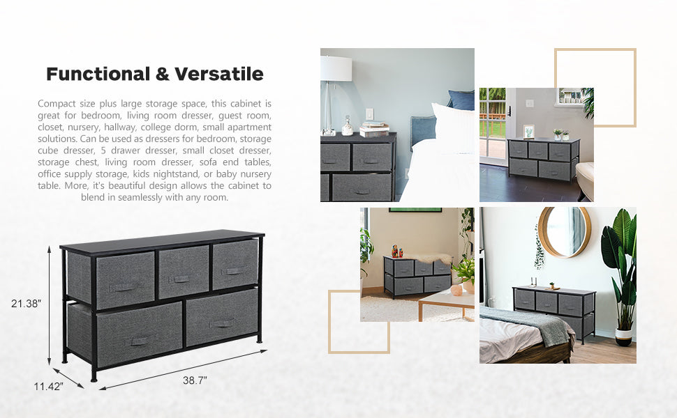 - 【Functional & Versatile】— Compact size plus large storage space, this cabinet is great for bedroom, living room dresser, guest room, closet, nursery, hallway, college dorm, small apartment solutions. Can be used as dressers for bedroom, storage cube dresser, 5 drawer dresser, small closet dresser, storage chest, living room dresser, sofa end tables, office supply storage, kids nightstand, or baby nursery table. More, it's beautiful design allows the cabinet to blend in seamlessly with any room d
