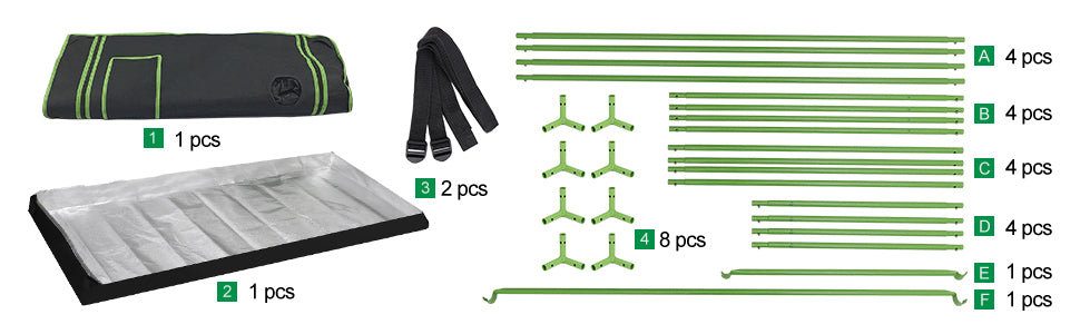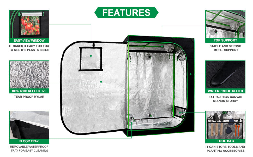 • 【Tool Bag & Floor Tray】 Features a removable waterproof floor tray for easy cleaning. There is a tool bag inside the tent, convienient to storage tools and grow accessories. Two support poles included. Very simple to set up with the included instructions.