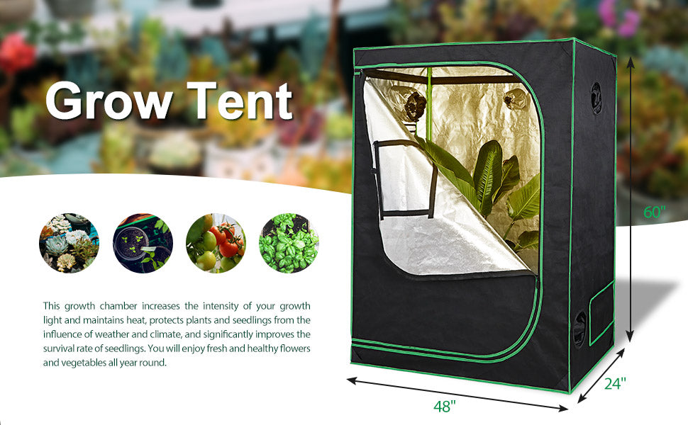 ZENY™ 48"x24"x60" Hydroponic Grow Tent with Observation Window and Floor Tray, High Reflective Growing Room