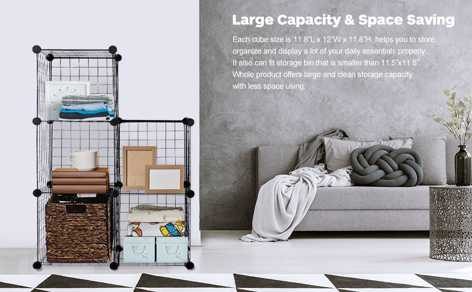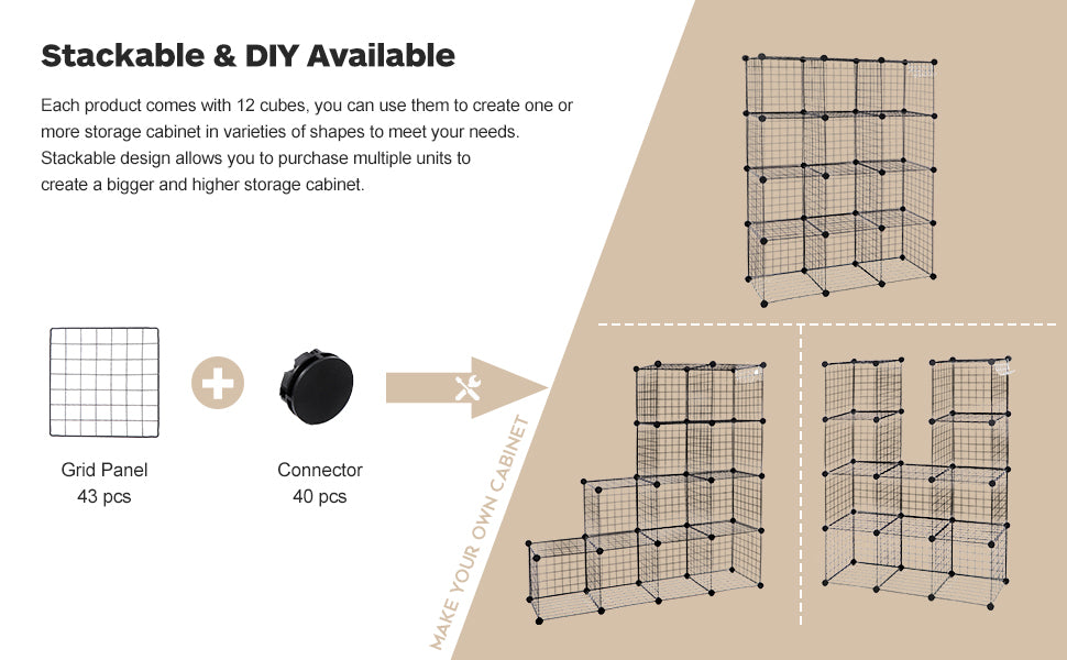 【Sturdy & Durable Material】- These 12 cubes are made of powder-coated steel wire and ABS plastic connectors. Each cube holds up to 22 lb. Very durable for long term use