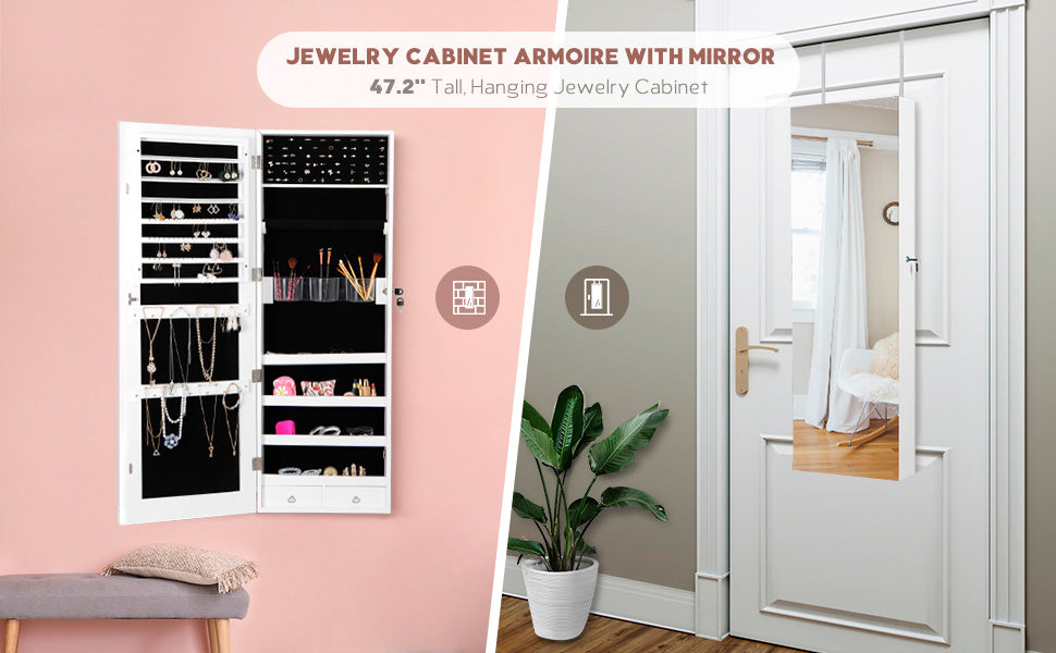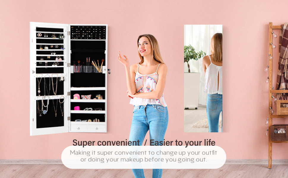 - FULL SCREEN MIRROR -- ZENY™ Luxurious Jewelry Armoire features a full length frameless make up dressing mirror. Making it super convenient to change up your outfit or doing your makeup before you going out.