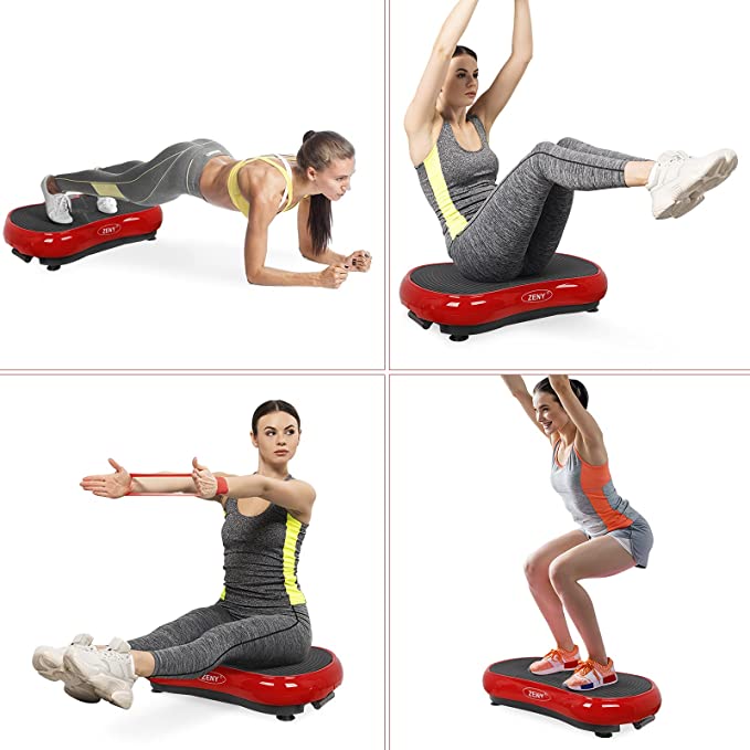 The Zeny vibration plate exercise machine is a popular body shaking fitness equipment. Whether you're at home or the office and sit through long periods in duration, the vibration plate can help improve blood circulation and relax your muscles. After just a few minutes on the machine, strengthen your core and relax whole body muscles. This ZENY upgraded vibration board features anti-slip surface, LCD display digital control, Bluetooth function. You can listen to your favorite music while exercising, making the fitness atmosphere more enjoyable. The resistance bands make it possible to get in a great workout or stretch. In addition, portable handle under the base make it convenient to move the board to different locations or stow away when not in use. With 99 levels of intensity, the fitness vibration plate is ideal for beginners and experienced fitness gurus. It can also help with reducing weight, Improve flexibility, increase bone mineral density, balance and coordination, or relieve back pain by decompressing the spine.