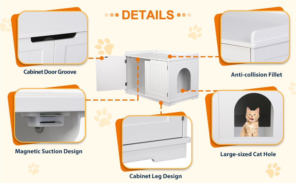 - Stury Construction: The cat washroom hidden furniture is constructed of high-quality engineered board for increased longevity and durability, power coated white vein finished for scratch-resistant and waterproof, which ensures long time use. It's easy to clean up, just wipe it with wet cloth to keep the cat house clean, saving time and effort.
