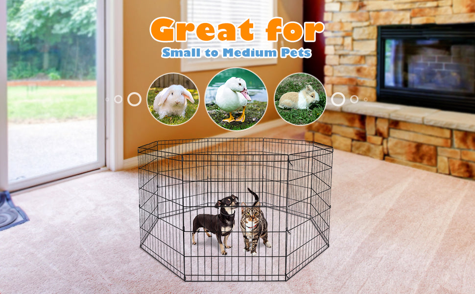 - 【Great for Small Animals】-- ZENY 8 panels exercise pen works great as a dog fence or as an exercise area for non-climbing small to medium animals including rabbits, ducks, turtles & guinea pigs and some other small animals. Keep pets safe and provide large space for them to run.