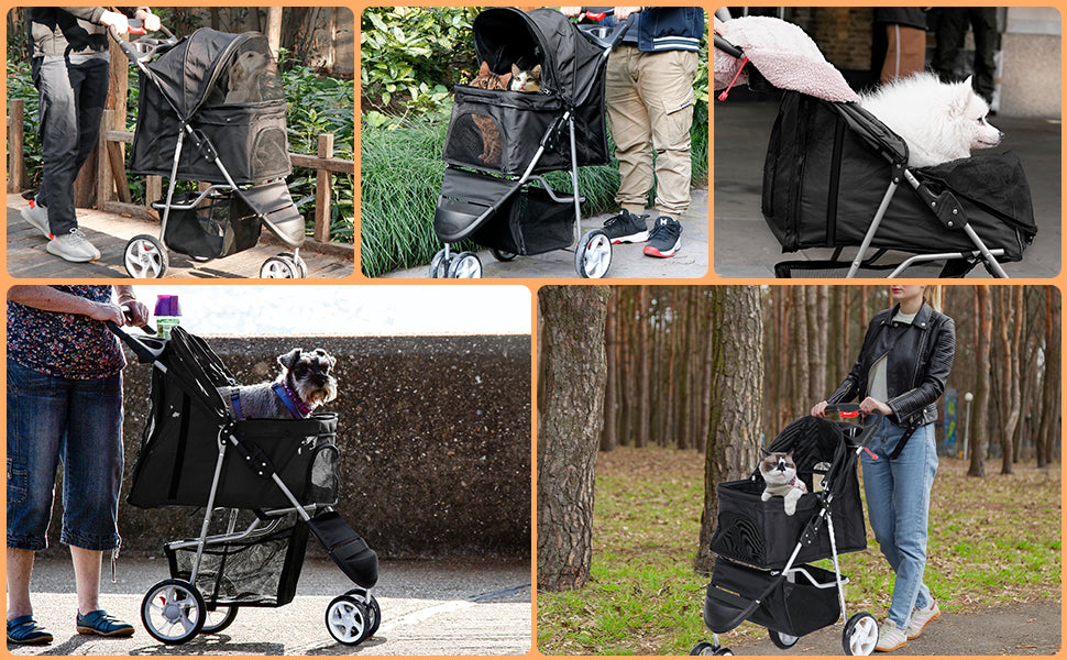 - ZENY pet stroller is collapsible and lightweight, making it easy to carry and use at home or on a trip. And this pet carrier is designed to be friendly, sturdy and roomy, suitable for dogs, cats and other small animals. And our strollers is a perfect choose if your pets are having trouble walking due to joint pain, arthritis, or recent surgery.