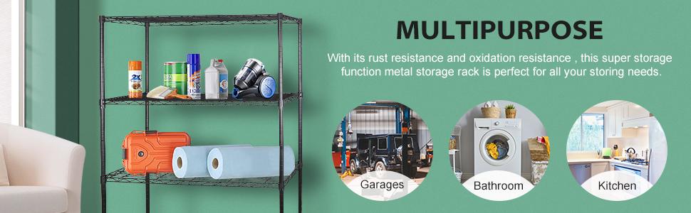 - 【Versatile Use】- This metal shelving unit can be used in the kitchen, the garage, pantry, outdoor shed, warehouse, workshop, and more. It’s perfect for storing tools, clothes, books and whatever else is taking up space.