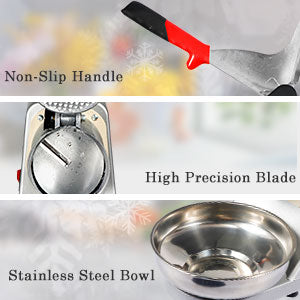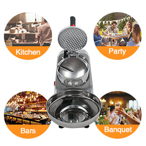 - High Effiency & Fast Speed - Highly efficient motor can produce 143 lbs of shaved ice per hour to meet demands of large amount of ice in a relatively short time.A Commercial grade Stainless steel shaving blade provide softer finer ice, rust resistant, environmental-friendly varnished yield healthy, large amount of fluffy snow ice. A kitchen MUST snow cone truck with great value
