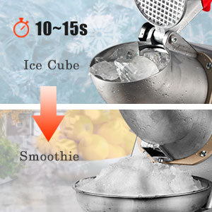 With sharp alloy steel shaving blade ice and high power, its rotation speed up to 2000 runs/min, and only takes few seconds to finish the crush process.